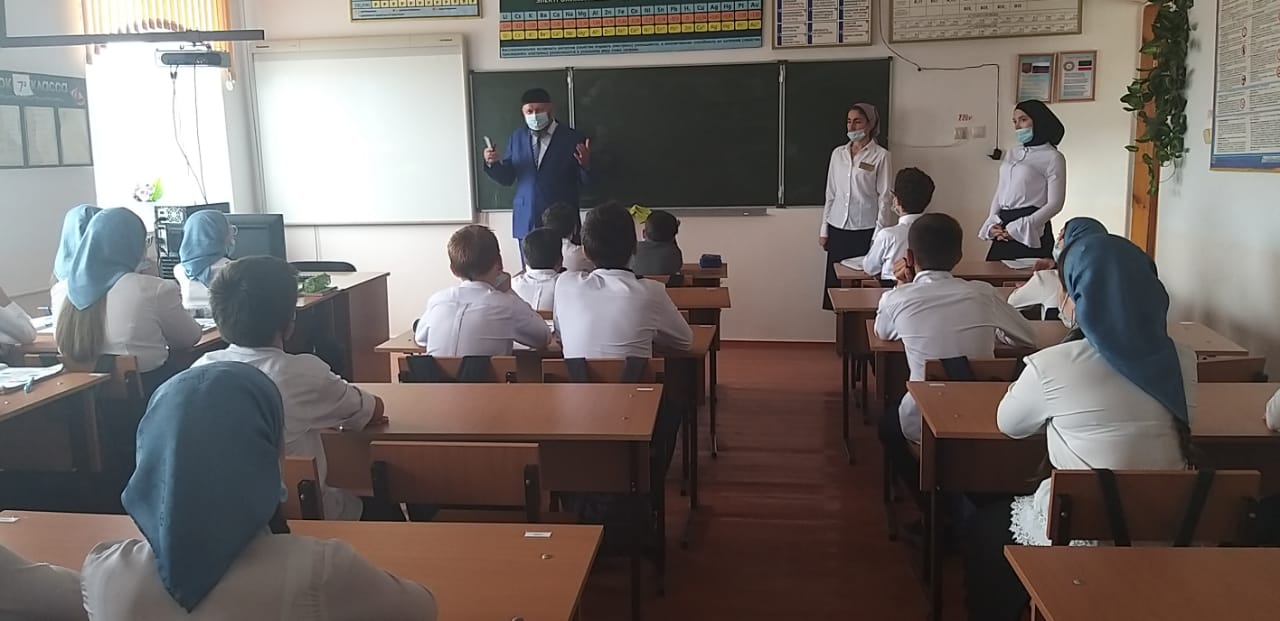 24.09.2020г. состоялась встеча учащихся 7-х классов с пом. рук. гос. управления по кинематографии Ибрагимовым М.А. Была проведена беседа в рамках здорового образа жизни и профилактики правонарушений.