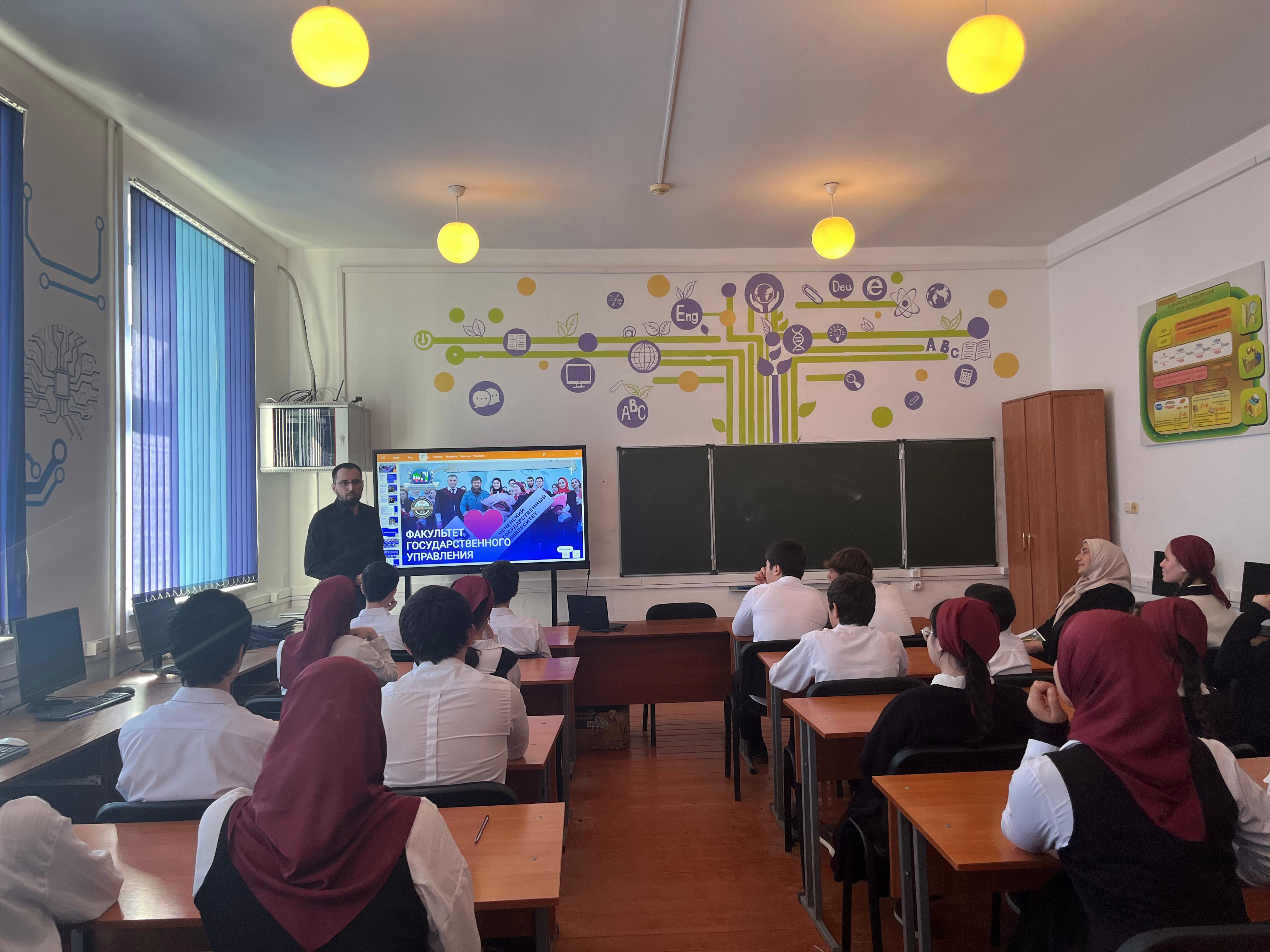 19 .11.25г. в МБОУ «СОШ-1 с. Новые Атаги» провели встречу учащихся 10-11 классов с Дудаевым Геназом Саид-Хусейновичем, доктором педагогических наук